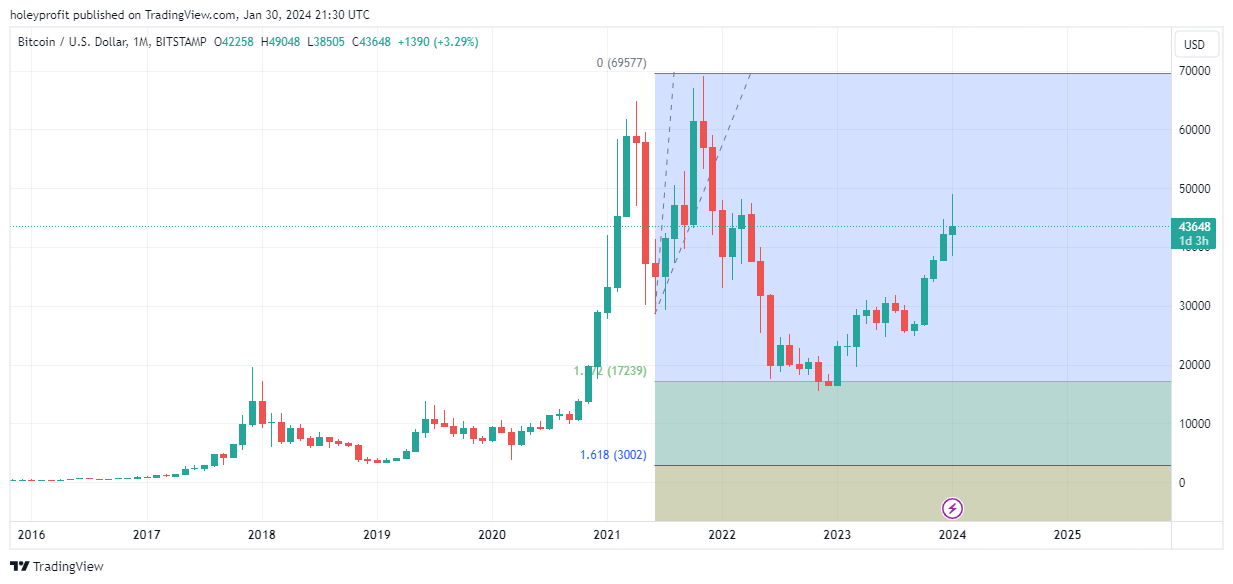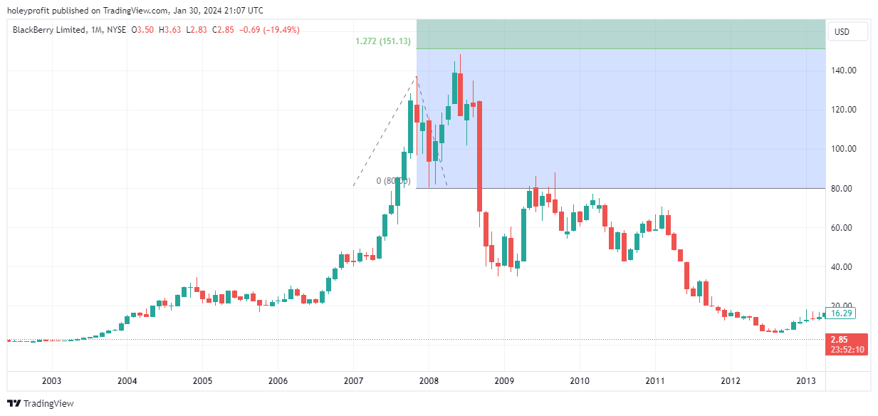 From a trading perspective, if this was to happen - History leaves clues. Let’s look closer at the top in BB. Using a fib from the high to the low of the fake crash, we can see the first wick comes in a bit under 1.27 and then the second wick(High) is around 1.27.
