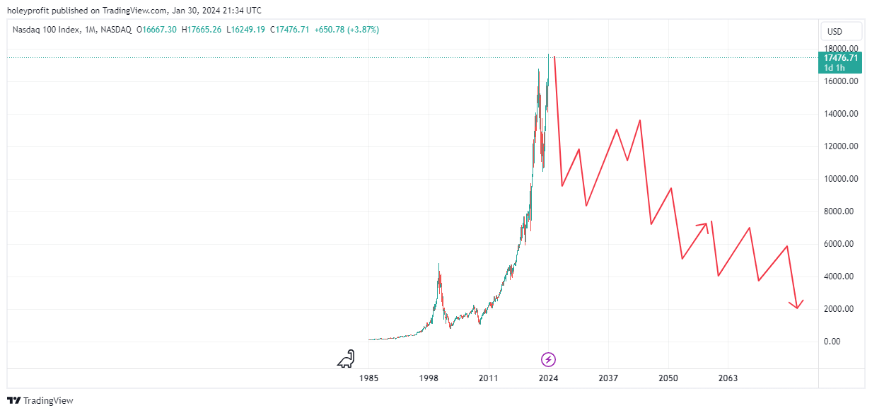 The model implying a horrific future for BTC is it plays out, but I digress. This is to a Nasdaq doom post.