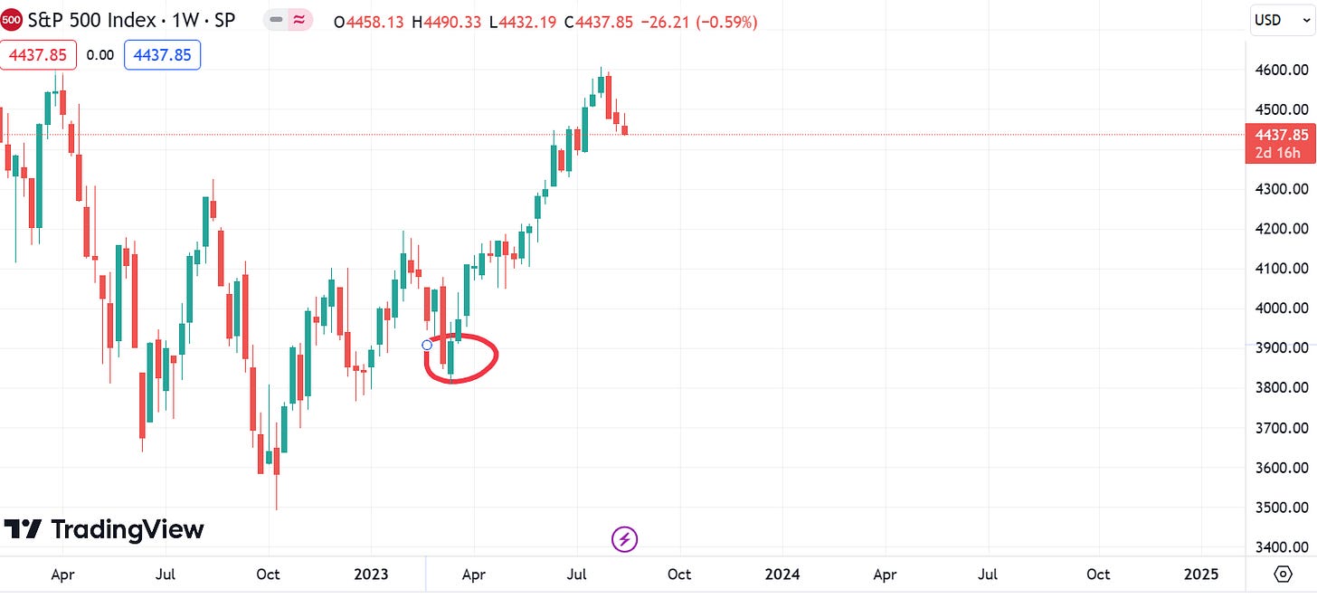 If we’d been looking for tops but also been wary into drops and looked for cheap spots to hedge very simple trend rules of stops under the last low and a target of 1:2 RR would have produced three winning signals. Total of 6 times whatever is risked.